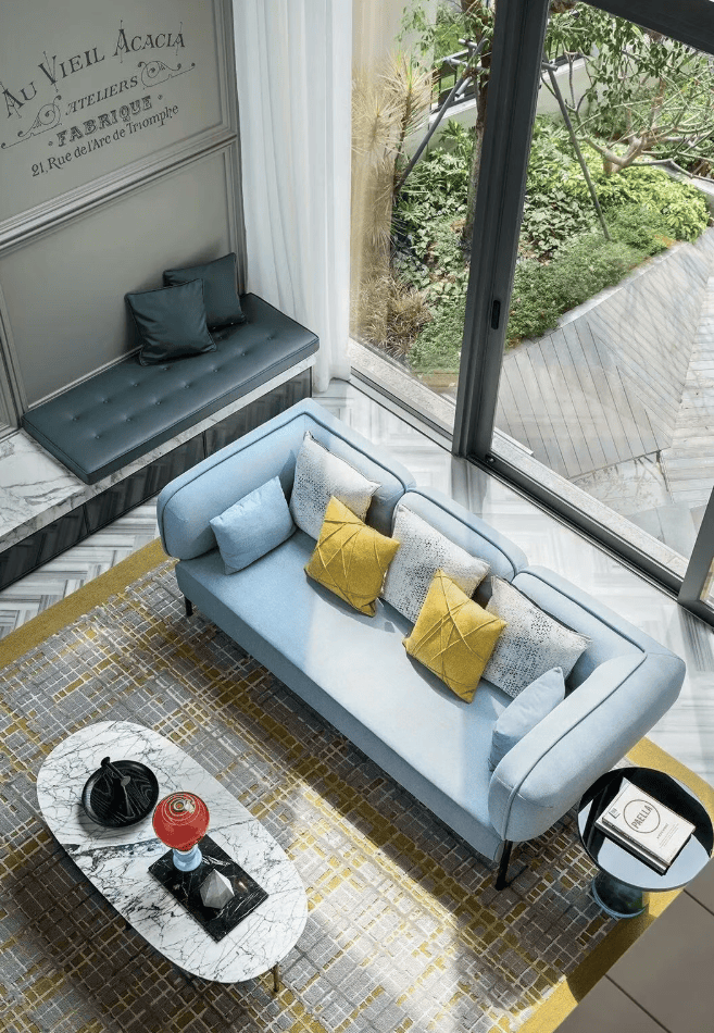 :具有750㎡的超大花圃,可设置私人泳池、网球场等高端设备。花圃取室内空间无缝跟尾,实正实现“室表里一体化”糊口。